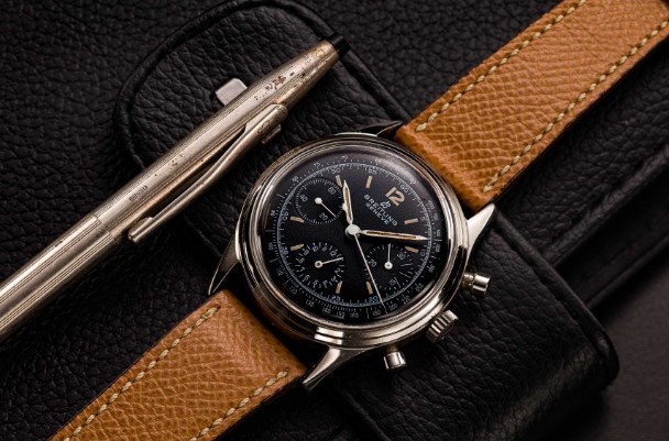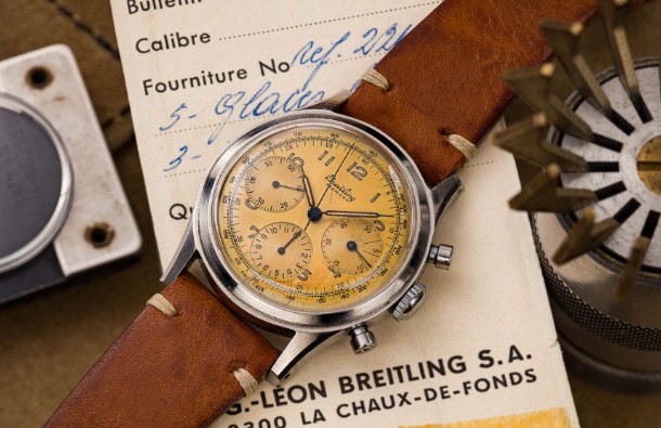 The Premier 765 from 1951 is yet another amazing variant showing how Breitling continued to evolve the theme. This watch dates to 1951 but looks like a watch that could have debuted during the following decade. The dial is all black, and the lumed indices are hashes instead of Arabic numerals. It’s yet another example of a standout chronograph that any brand would like to have in its back catalog.