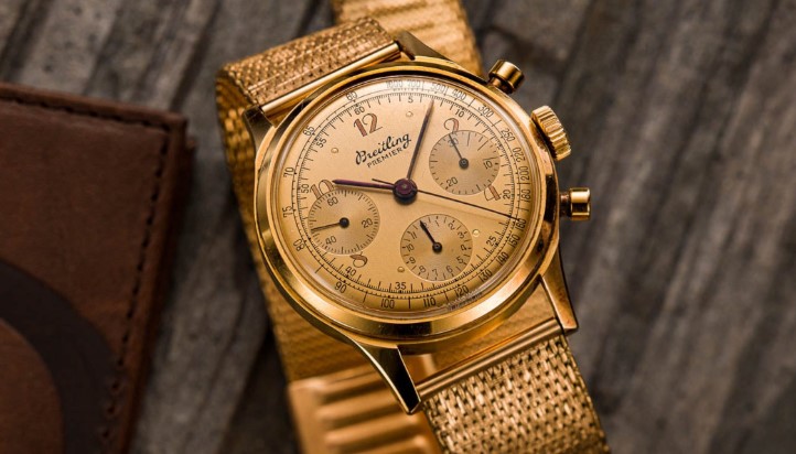 Breitling also created Premiers in non-waterproof cases. These are easy to identify due to their rectangular pushers. In my view, if they are in gold, they’re even more special. Gold watches were rare when produced, and today, there are few survivors in fabulous condition. A watch such as the gold 36mm 782 above contains a unique “knee-lug” case and a dial that would look at home in top clone Breitling watches from some of the most luxurious brands. In person, details such as the applied indices and even the printing are flawless. We’ve never thought of Breitling as anything but a high-level brand, but these watches were truly something to behold. Furthermore, examples like this 782 show how versatile Breitling was in making pieces for all occasions.